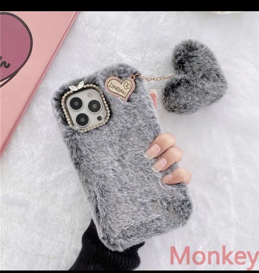 Cute fluffy grey iphone case available for 15 pro max, 12 pro max,11 pro max, 11 pro,12, 12 pro, 13,14